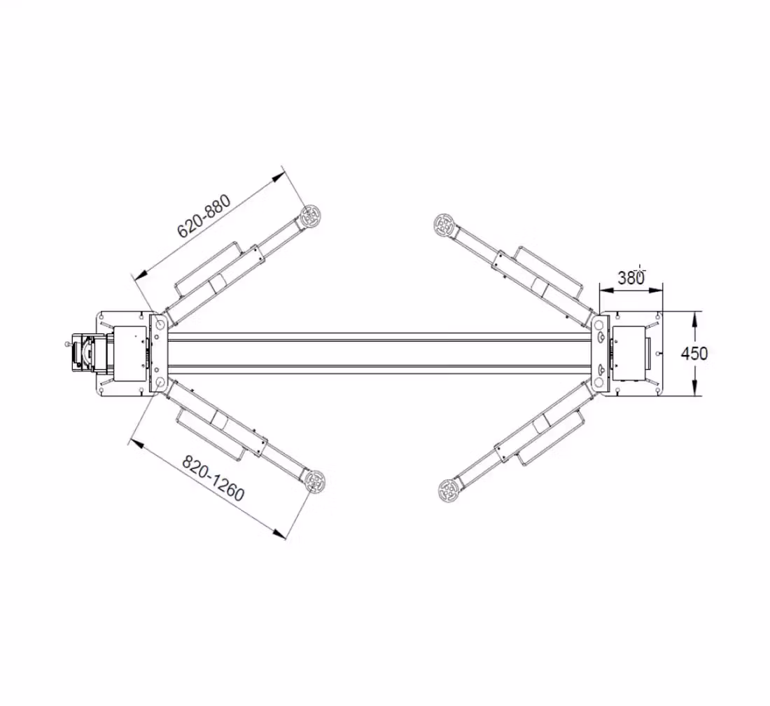De asymmetriska armarna ger bra balans och underlättar dörröppning när fordonet står upplyft. Armarna fälls utåt och ger gott om utrymme för flera fordonstyper, inklusive kombibilar och lättare transportfordon.