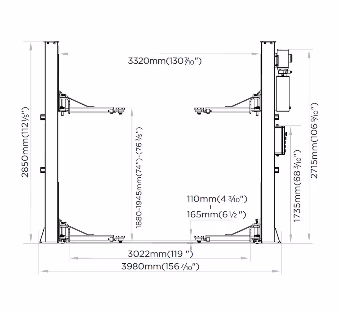 L-280 är helautomatisk och styrs från kontrollpanelen. Du slipper manuell upplåsning eftersom båda pelarna har elektromagnetiska säkerhetslås som aktiveras och avaktiveras automatiskt. Det sparar tid, minskar moment mellan pelarna och ger en jämnare arbetsrytm.