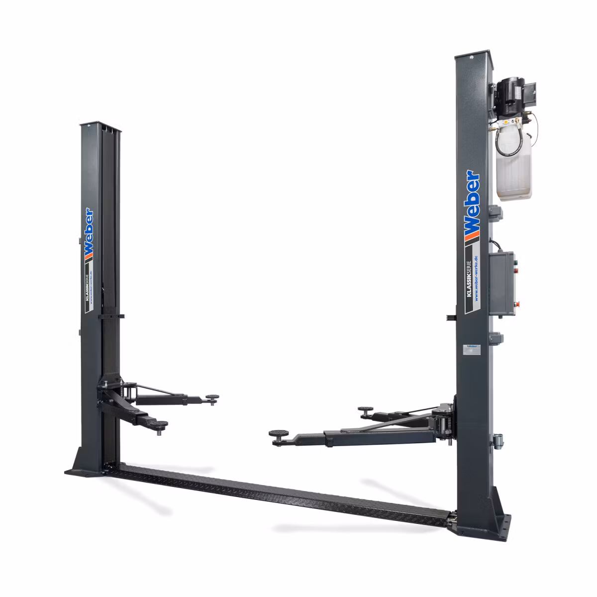 Elektrohydraulisk 2-pelarslyft med asymmetriska stödarmar för bilar och små skåpbilarWeber QSD-4000A från Classic-serien är en kraftfull 2-pelarslyft med en lyf